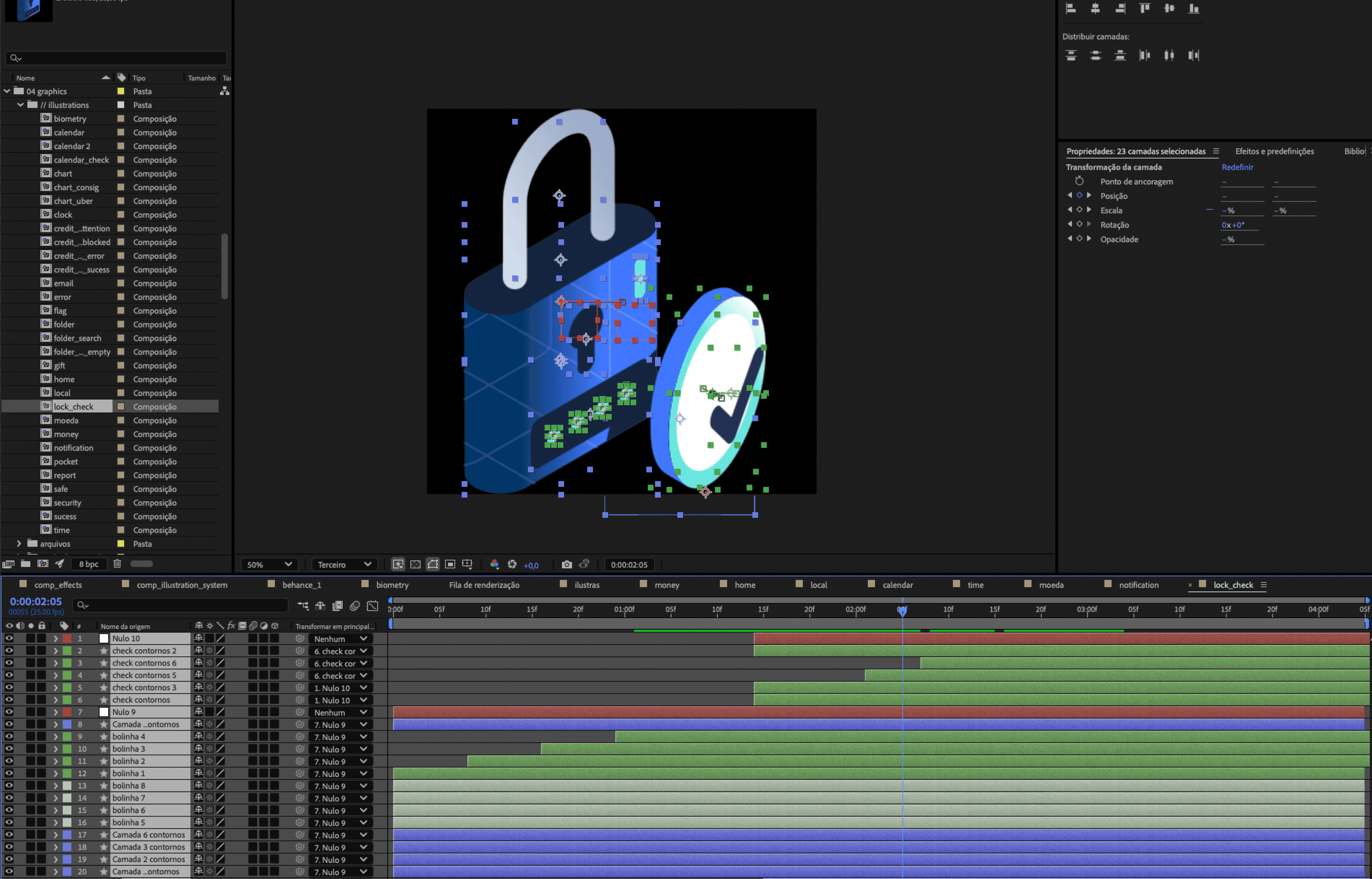 Para tornar a experiência digital mais intuitiva, agradável e memorável, utilizei o After Effects na criação das animações. Já para transformar as animações em código, usei o LottieFiles. Busquei explorar movimentos suaves e efeitos que simulam o 3D, criando a sensação de profundidade nos elementos.