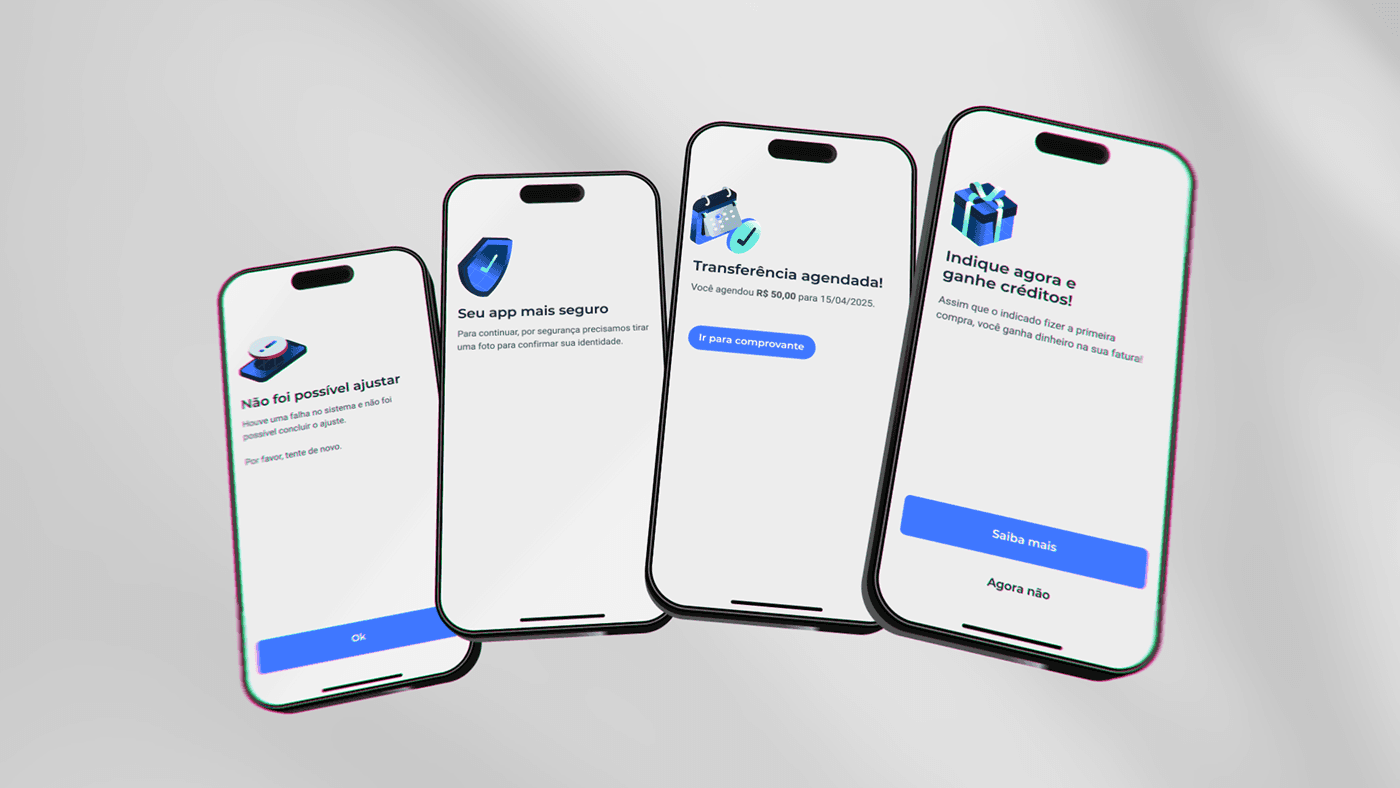 No final de 2024, com a expansão de um banco digital para novos mercados, fui responsável por criar um sistema de ilustrações para apps, capaz de se adaptar à identidade de cada marca sem perder a coerência visual e garantindo escalabilidade.